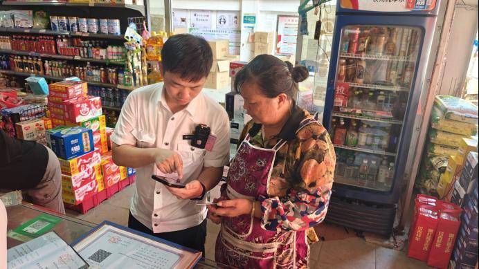 “您可以在赣服通上找到烟草相关服务,选择延续申请,然后按照提示一步步上传营业执照、许可证、身份证等材料,提交就能完成操作。”稽查员曾德聪在示范时耐心地解释道,并细致地指导雷玉兰店老板每个步骤需要注意的地方。在雷老板清楚操作流程后,迅速完成了许可证延续工作,表示“现在有了‘小澄码上办’,我在上面提问我的问题,很快就会得到解答。”