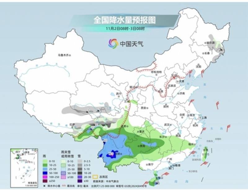 今明两天(11月2日至3日),我国东北地区和青藏高原的雨雪逐步缩减,但南方降雨发展增强,西南、江南等地部分地区有暴雨或大暴雨。随着阴雨增多,南方多地气温下降,体感湿凉,公众请注意防雨、保暖。而北方多地气温起伏较大,需及时调整着装,谨防感冒。