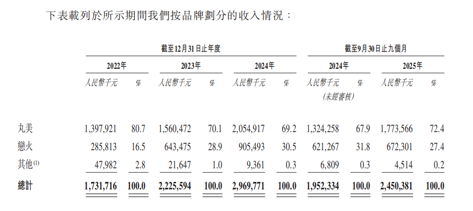 从披露的财报数据来看,2025年前三季度,丸美生物两大主品牌在今年前三季度均实现增长。其中主品牌丸美营业收入为17.74亿元,同比增长34.09%;恋火营业收入为6.72亿元,同比增长8.21%。